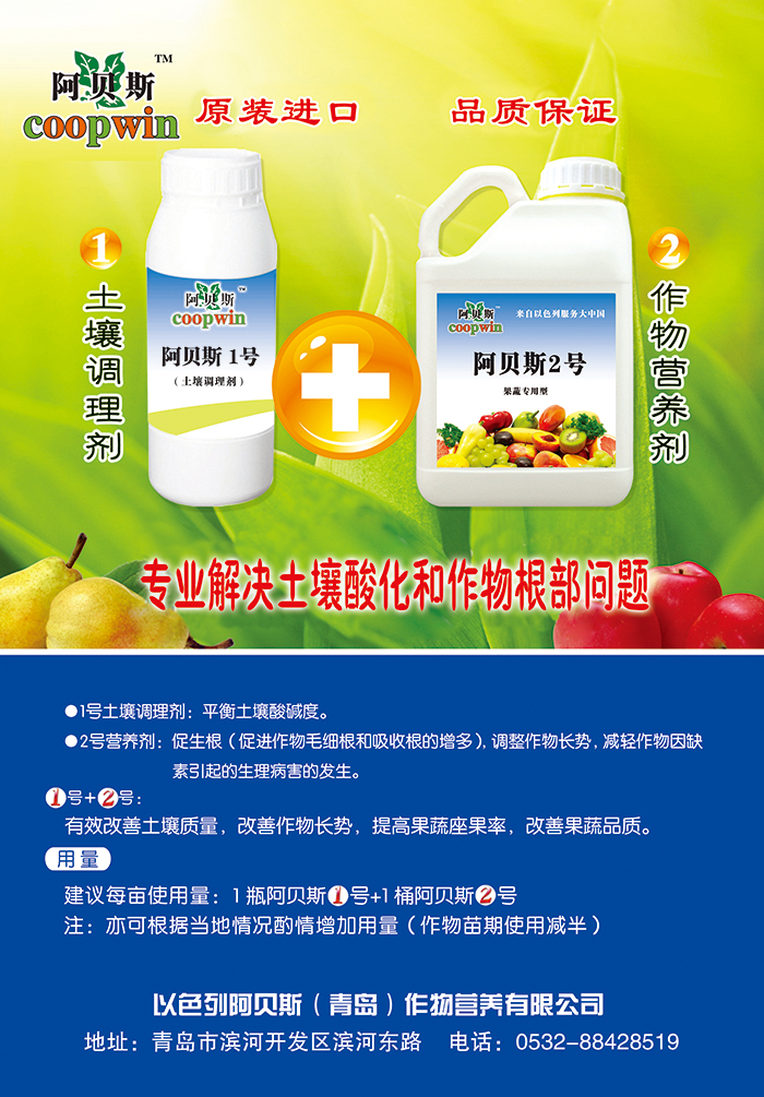 注:土壤酸化严重的亩用量两瓶一号一次可调0.5-0.8PH值